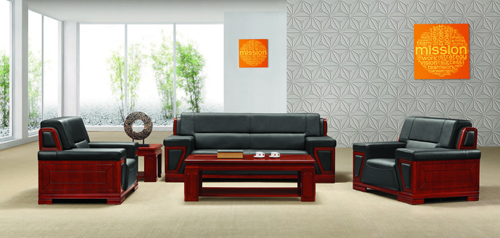 面料:采用進口西皮;皮面光澤度好,透氣性強,柔軟而富于彈性,厚度>1.2mm。泡綿:坐墊采用45Kg/m3發(fā)泡高密度高回彈臺資“東亞”牌優(yōu)質(zhì)泡綿,軟硬適中,回彈性能好,不變形;根據(jù)人體工程學(xué)原理設(shè)計,坐感舒適;模哼x用優(yōu)質(zhì)樺木及夾板,經(jīng)脫脂、烘干、防蟲等處理,含水率≤11%,內(nèi)置蛇形彈簧及彈力繃帶(蛇形彈簧采用80#碳素蛇形鋼條,彈力好,耐用性強,不易變形)。底座和扶手采用老撾胡桃木制作,噴大寶漆。