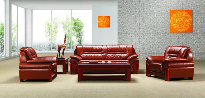 面料:采用一級頭層黃牛皮;皮面光澤度好,透氣性強,柔軟而富于彈性,厚度>1.2mm。泡綿:坐墊采用45Kg/m3發(fā)泡高密度高回彈臺資“東亞”牌優(yōu)質(zhì)泡綿,軟硬適中,回彈性能好,不變形;根據(jù)人體工程學原理設(shè)計,坐感舒適;模哼x用優(yōu)質(zhì)樺木及夾板,經(jīng)脫脂、烘干、防蟲等處理,含水率≤11%,內(nèi)置蛇形彈簧及彈力繃帶(蛇形彈簧采用80#碳素蛇形鋼條,彈力好,耐用性強,不易變形)。底座和扶手采用老撾胡桃木制作,噴大寶漆。