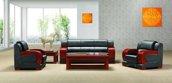 面料:采用進口西皮;皮面光澤度好,透氣性強,柔軟而富于彈性,厚度>1.2mm。泡綿:坐墊采用45Kg/m3發(fā)泡高密度高回彈臺資“東亞”牌優(yōu)質(zhì)泡綿,軟硬適中,回彈性能好,不變形;根據(jù)人體工程學原理設(shè)計,坐感舒適;模哼x用優(yōu)質(zhì)樺木及夾板,經(jīng)脫脂、烘干、防蟲等處理,含水率≤11%,內(nèi)置蛇形彈簧及彈力繃帶(蛇形彈簧采用80#碳素蛇形鋼條,彈力好,耐用性強,不易變形)。底座和扶手采用老撾胡桃木制作,噴大寶漆。