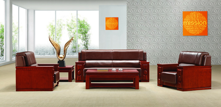 面料:采用進口西皮;皮面光澤度好,透氣性強,柔軟而富于彈性,厚度>1.2mm。泡綿:坐墊采用45Kg/m3發(fā)泡高密度高回彈臺資“東亞”牌優(yōu)質泡綿,軟硬適中,回彈性能好,不變形;根據人體工程學原理設計,坐感舒適;模哼x用優(yōu)質樺木及夾板,經脫脂、烘干、防蟲等處理,含水率≤11%,內置蛇形彈簧及彈力繃帶(蛇形彈簧采用80#碳素蛇形鋼條,彈力好,耐用性強,不易變形)。底座和扶手采用老撾胡桃木制作,噴大寶漆。