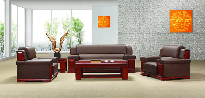 面料:采用進(jìn)口西皮;皮面光澤度好,透氣性強(qiáng),柔軟而富于彈性,厚度>1.2mm。泡綿:坐墊采用45Kg/m3發(fā)泡高密度高回彈臺(tái)資“東亞”牌優(yōu)質(zhì)泡綿,軟硬適中,回彈性能好,不變形;根據(jù)人體工程學(xué)原理設(shè)計(jì),坐感舒適;模哼x用優(yōu)質(zhì)樺木及夾板,經(jīng)脫脂、烘干、防蟲等處理,含水率≤11%,內(nèi)置蛇形彈簧及彈力繃帶(蛇形彈簧采用80#碳素蛇形鋼條,彈力好,耐用性強(qiáng),不易變形)。底座和扶手采用老撾胡桃木制作,噴大寶漆。