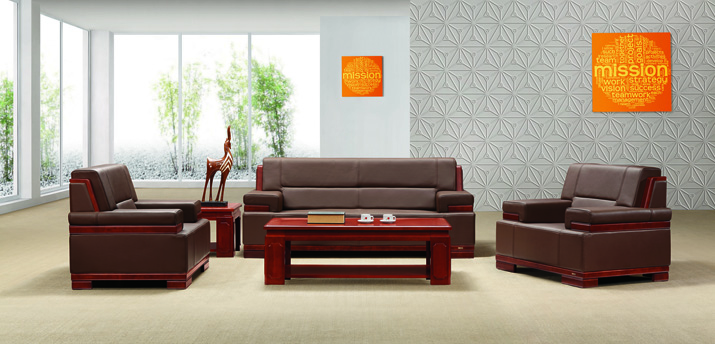 面料:采用進口西皮;皮面光澤度好,透氣性強,柔軟而富于彈性,厚度>1.2mm。泡綿:坐墊采用45Kg/m3發(fā)泡高密度高回彈臺資“東亞”牌優(yōu)質(zhì)泡綿,軟硬適中,回彈性能好,不變形;根據(jù)人體工程學(xué)原理設(shè)計,坐感舒適;模哼x用優(yōu)質(zhì)樺木及夾板,經(jīng)脫脂、烘干、防蟲等處理,含水率≤11%,內(nèi)置蛇形彈簧及彈力繃帶(蛇形彈簧采用80#碳素蛇形鋼條,彈力好,耐用性強,不易變形)。底座和扶手采用老撾胡桃木制作,噴大寶漆。