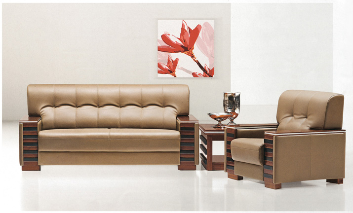 面料:采用進(jìn)口西皮;皮面光澤度好,透氣性強(qiáng),柔軟而富于彈性,厚度>1.2mm。泡綿:坐墊采用45Kg/m3發(fā)泡高密度高回彈臺(tái)資“東亞”牌優(yōu)質(zhì)泡綿,軟硬適中,回彈性能好,不變形;根據(jù)人體工程學(xué)原理設(shè)計(jì),坐感舒適;模哼x用優(yōu)質(zhì)樺木及夾板,經(jīng)脫脂、烘干、防蟲等處理,含水率≤11%,內(nèi)置蛇形彈簧及彈力繃帶(蛇形彈簧采用80#碳素蛇形鋼條,彈力好,耐用性強(qiáng),不易變形)。底座和扶手采用老撾胡桃木制作,噴大寶漆。